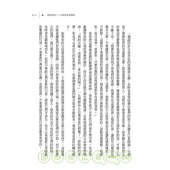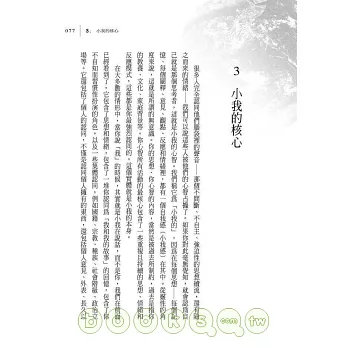 本書作者在全世界授課、演講,累積了許多寶貴的教學經驗。在書中,他列舉了很多個人的經歷、故事和其他的軼聞、禪宗的公案等,以簡明清楚的言辭,搭配十分實際的修練方法,引導讀者從內在省思自我,認清小我的真面貌。他教導我們從小我中解放?來,不再受困於虛幻自我以及外在形相世界的認同,擺脫對無常的恐懼,擁抱真正的快樂。這樣還能進一步提升自我意識,獲得真正的內在自由,喚醒人生的目標,達到一個更美好的人生。