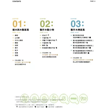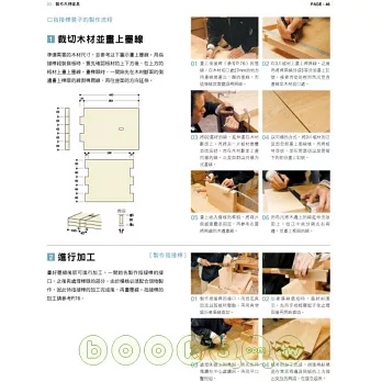 ※書中會將各個木工小物、家具,依難易度標示出來,並且有詳細的分解步驟說明。