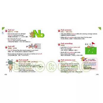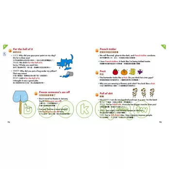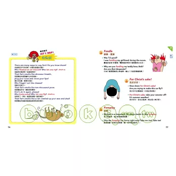 ●每個危險用語之下都有兩句例句,讀者不僅能得知意義,也能學會用法。例句經常蘊含無厘頭笑點,對話式例句更有互動臨場感。