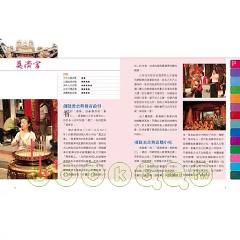 本書匯集了台灣14個縣市中,文化以及小吃均備受推崇的廟宇,同時規劃了周邊景點的旅遊路線,希望大家在假期中前往尋訪時,除了肚子吃飽飽之外,也要多多留心台灣的廟口文化,同時向保佑這塊寶島的眾神明們打聲招呼。