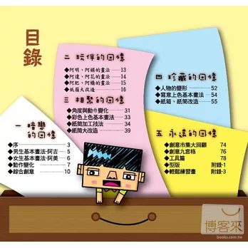 作者設計了八個不同的角色,賦予不同的造型特色與個性,帶您重溫童年的回憶,就像在看一本繪本,很有趣喔!