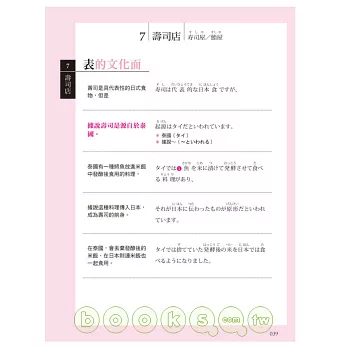 ◆表的文化面:針對主題進行日本人生活相關的介紹及解說。