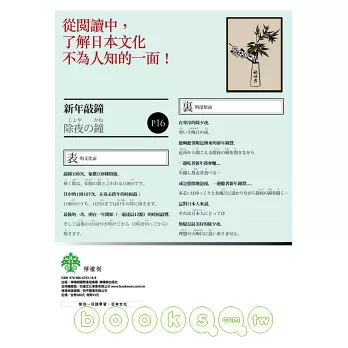 本書每一主題均有「表」「裡」兩方面論述,藉由「表」「裡」雙管齊下的知識,完整了解日本人的思想、文化全貌。