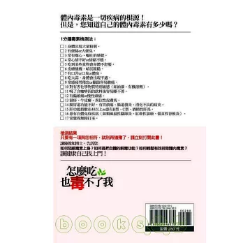 朋友曾經問到,那一種排毒法是最有效?思索了一下建議朋友從這本《怎麼吃,也毒不了我!》瞭解起。推薦這本書主因是書籍的實用性,加上作者陳俊旭醫師從專業的角度以淺顯易懂的方式,告訴讀者阻毒、解毒、排毒的方法,讓你在日生活中避免「毒」害,實踐無毒生活。 在黑心食物全球化的現今,觸目驚心 more 陳俊旭博士的〔阻毒、解毒、排毒〕私房秘笈大公開!