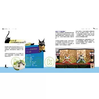 ●給喜歡故做神祕的民俗貓--你知道人見人愛的招財貓舉起的手不一樣?左右手各有不同的意思嗎?巴里島的貓為什麼是木雕師傅的最愛?馬來西亞古晉市的名字又和貓有什麼關聯?