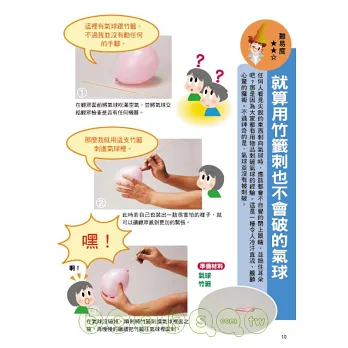 ◆集合多數可使用硬幣、玻璃杯、寶特瓶等身邊隨手可得的物品就可進行的科學魔術技巧!