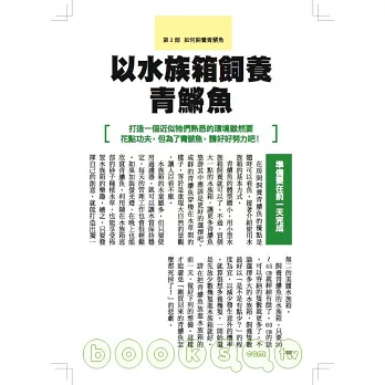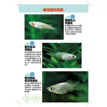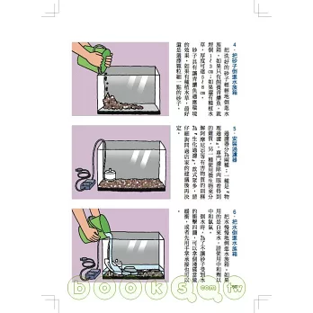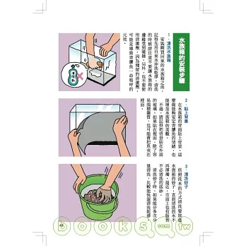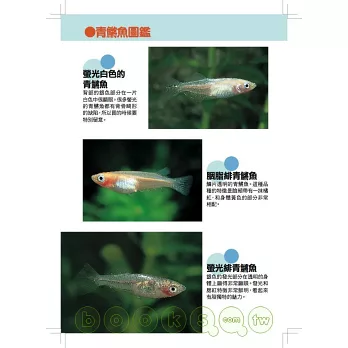 除了魚的種類和基本的飼養方法,也介紹如何用寶特瓶和睡蓮缽飼養和繁殖魚的方法等,讓人可以享受到更多飼養樂趣。內容非常充實喔!