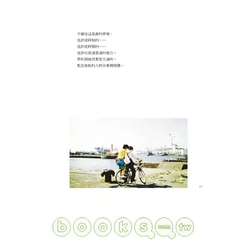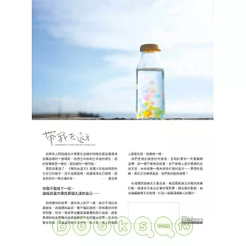 對我而言成長最大的意義在於辨認自己與其他人不同,然後找到方法接受自己這個獨特性。擁有這個獨特性令我們快樂,也令我們寂寞。我相信每個人心中都有一個想要出走的遠方,年紀越大只是藏得比較好,或再也不敢說出來而已。希望這本書也能帶領你看見生命的美麗與遺憾,經歷過憂傷之後,還有往前出發的勇氣。