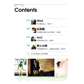 如果你還不認識這些人氣指數超高的攝影師,這是你踏入人像攝影的開始;如果你已經久仰這些攝影師的大名,這將是你真正認識他們的第一步!站在巨人的肩膀上,你將會看得更遠。