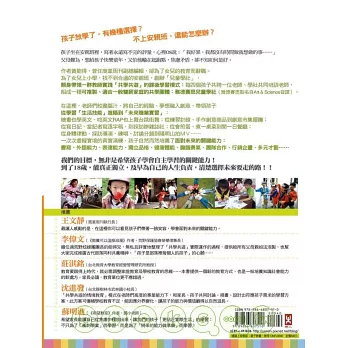 走過這麼一段波折的課後教育推廣過程,三年終於有成,遂將我在這其中反覆思量的心得與體會,以及老師們創意的教學活動,點點滴滴集結成書,謹此野人獻曝,期盼得到全台灣父母師長的分享和指教。