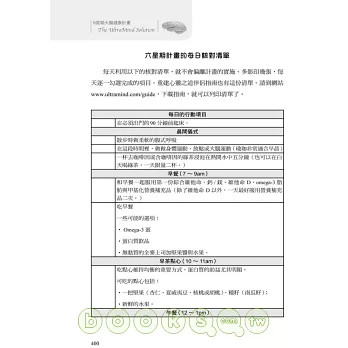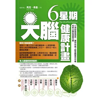 馬克.希曼醫師,特地以過來人的身份說明自己如何從注意力不足、沮喪及失憶等情況下,找到最有效的治療方式,他認為修復衰弱大腦的關鍵在於改變身體,因此提出6星期促進大腦活力的計劃,以食物、運動、排毒等方式來取代藥物治療,幾年下來,陸續幫助了一千多位患有自閉症、失智症、ADHD、憂鬱症等患者,從失序的生活中找回自我,重新贏回健康。
