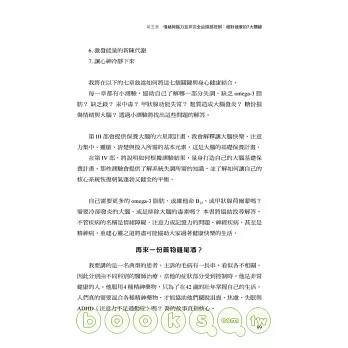 第I部,探討我們的大腦到底出了什麼問題,如沮喪、焦慮、失智症、自閉與注意力不集中等現代社會流行病的真實原因。
