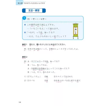 【文法練習】:各課文法要點均以「句型」形式列出,透過練習讓您了解句型實際運用