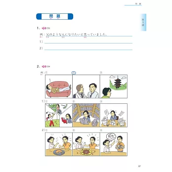 《大家的日本語》中級系列各課結構包含「單字」、「文法與練習」外,另增加「聽與說」、「讀與寫」單元,持續培養您全方位日語運用能力!