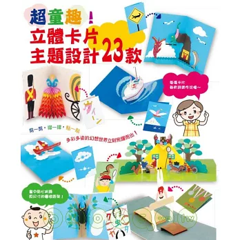 漫長的暑假、悠哉的午後該怎麼安排呢,帶著孩子一起來做卡片吧!只要幾張紙跟剪刀就可以創造3D魔法,本書所刊載的造型相當豐富,而且製作方法很簡單,巧妙利用摺與切割的技巧,就可作出立體空間。當平片轉換成立體,裡頭的內容物成功站起來,這時的驚喜與成就感更是難以言喻。而且卡片的樣式豐富,除了孩子喜歡的恐龍、公主之外,還有宣傳環保意識的北極熊、永不放棄的舉重選手......在製作的過程中,還可以教導孩子一些自然知識與道德觀念,寓教於樂。