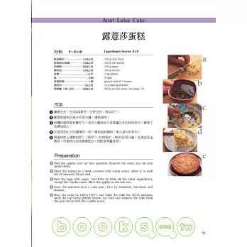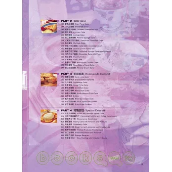本書分為塔&派(Tart&Pie)、蛋糕(Cake)、家庭糕點(Homemade Dessert)、特製甜品(Special Dessert),以中英文對照加上詳細步驟圖,共收錄:蛋白檸檬塔、乳酪杏仁蛋糕、祖母風味派、彼若多餅乾、李子杏桃酥餅、草莓醬米布丁、安瑟式甜甜圈、酥皮蘋果派、聖誕蛋糕、嘉年華甜點等近50道家常甜點,以更貼近義大利的方式,呈現樸實中滋味綿長的義式風情。