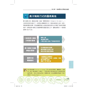 五、解說獨門圖表知識︰說明奧卡姆剃刀式的圖表風格、組圖的使用時機、圓點圖的特性、瀑布圖的使用方式、參照圖的應用技巧…