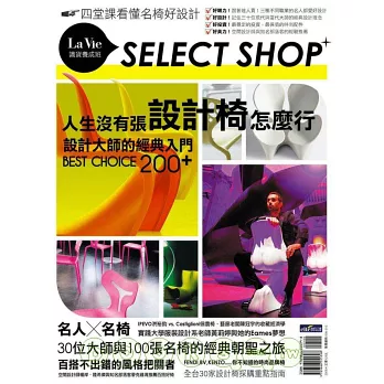 重點收錄了30位經典名椅設計師,如Charles & Ray Eames、Philippe Starck、柳宗理、Eero Aarnio等設計界天王們的經典創作。再加上三位對設計椅超有想法的達人---空間設計師楊岸、陸希傑與知名設計部落客Michael麥克雞塊,從最「勸敗」的角度,推薦的最值得成為收藏首部曲的入門單品!了解大師的設計理念,也許從購入較低價位的設計椅開始,在生活中延續創意的絕妙思維,跟著設計椅共同享受美感生活。