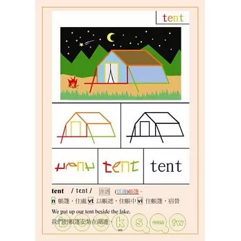 學生學單字時先仔細觀察該字圖像的一筆一畫(字母),然後再用字母去描繪圖像來記憶單字。讓學生能夠憑著對圖像的印象,隨時隨地可在腦海畫(字)圖練習與記憶單字,再正確地拼寫出單字是本書的特色,能把單字記住時自然能同步依單字拼法去做正確發音。(本書另提供音語一法,讓讀者先記單字發音再拼出單字。)