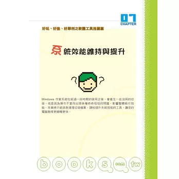 內容涵蓋的範圍非常廣泛,有一般常用的軟體,也有一些鮮為人知但實用性或功能性強的推薦軟體,從驅動程式的檢查到安裝系統後的桌面美化、外觀改善等,也包含系統效能調校、備份救援等工具,皆是網路上公認實用性最高、功能完善且容易上手的軟體。無論電腦新手或是稍具程度的人,看過本書後都會大大提升您的電腦使用功力,打造一個最穩定、功能全面的電腦環境,瞭解各式軟體的用途和一般應用方式,更可以進一步運用軟體來達成工作。