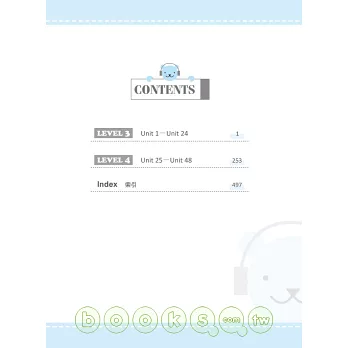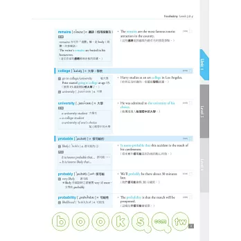 .本叢書按單詞難易程度共分基礎、核心、進階三冊,每冊所蒐集的單詞再分 2 級,方便所有同學按程度循序漸進地學習。短期之內熟讀本套叢書當可自我培養成單詞高手。