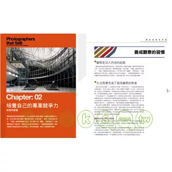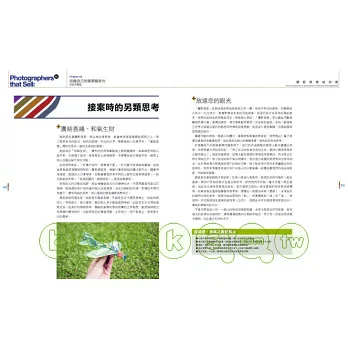 >> 從多年實務經驗中,忙線整理出接案攝影師不可不知的許多重要思考/分析技巧,讓你的接案實力輕鬆倍增,內功心法滿分!"