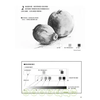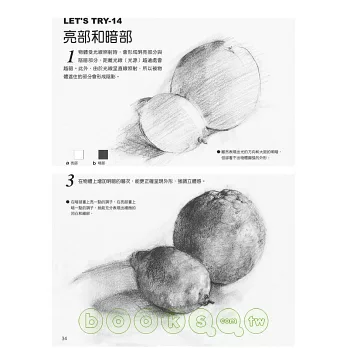 物體受到光線照射的地方,會形成亮部和暗部(明暗、陰影)的變化。試著以光線照射蘋果,這時陰影會順著蘋果的圓形表面,產生柔和漸層的變化。