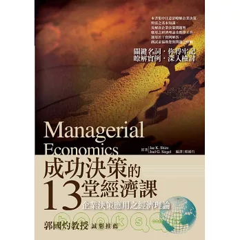 本書集中注意於瞭解企業決策所需之基本知識,及解決企業決策問題所應用之經濟理論及數學工具。運用若干實例解答,測試並協助您對問題之瞭解。