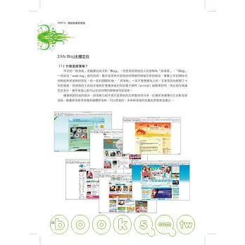 創造一個屬於你自己的平臺,分享生活及心情,網誌大改造:文字撰寫技巧、圖片拍攝祕訣、影音動畫製作…等,以及各大網站功能評比,讓你輕鬆找出適合平臺開站。