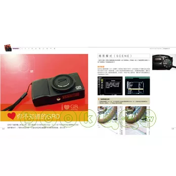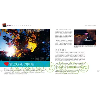 套句KennyChi說的,這台相機的好處就是可以「暗藏機絲」,帶著拍拍走很輕便,拿出來也不會引人注意;不管是用力拍、偷偷拍、搶快拍、慢慢拍,GRD都抓得住你要的感覺!除了你一定想得到的拍旅遊、拍生活,KennyChi還想告訴你,GRD也可以拿來……拍人像!誰說只有DSLR才可以?GRD拍得細膩自然、色澤飽滿,超靈活取景角度,可以捕捉最生動的神韻;拍寵物!超大光圈最適合室內拍貓攝狗,絕佳操控性,不錯失任何可愛表情;拍微距!一公分超強近拍,別說小花小草小蝴蝶了,讓你連吃路邊攤都拍到沒空下筷;拍商品!幾張珍珠板加上一支外閃,你相信GRD也可以棚拍商品攝影嗎?拍夜晚!捕捉都會夜晚絢爛燈光就靠這一台,教你無腳架也不手震的長曝秘技,讓你越夜越美麗!拍公仔!小巧可愛的公仔用GRD超強微距拍來超方便,可練習構圖+拍人像,是小相機最佳練拍素材!