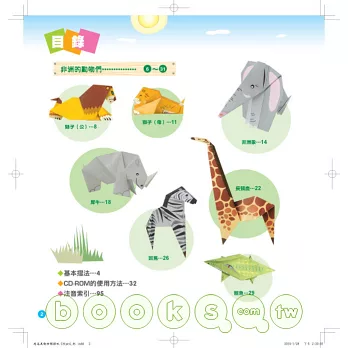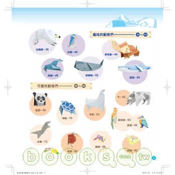 本書所示範的動物摺紙內容,都非常簡單,但造型超可愛相似度也高。將摺好的動物摺紙排在背景前,就能創造出一個開心的動物園。