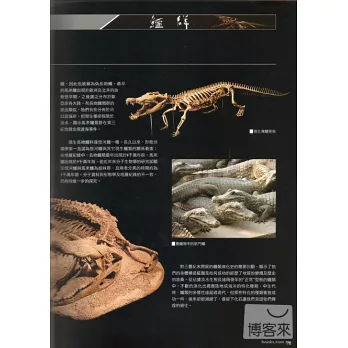 本書介紹中生代的水棲爬行動物,包括鱷類、蜥鰭類、魚龍類、海龍類及滄龍類五大類群。它們是生活在遠古海洋或湖泊河流環境中的脊椎動物,其中絕大多數都已先後從地球上消失,僅留下化石,只有鱷類等極少數種屬殘存下來活到今天。