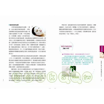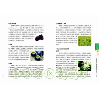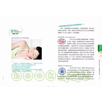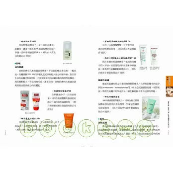 3.天然有機保養品的介紹:新的領域需要正確知識的引領。例如:?天然與人工合成保養品優缺點的比較、如何小心避免掉入假天然有機保養品的陷阱、天然植物萃取的必備知識、人工與天然防腐劑的優缺點比較,乃至全球十大天然有機認證機構的介紹,以及二十種常見天然有機成分添加功效剖析 。內文中,還附了醫學論文期刊的出處,也為這本「更具深度知識提供」的書下了最好的註解。