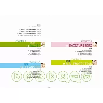 4.身體力行的教戰守則:除了生硬的知識,作者也深知消費者的實務需求。在最後一章「進階」附有「皮膚檢測STEP-BY-STEP」,有趣的問題引導膚質分析,也為急欲了解自己皮膚的讀者開啟了一扇門,讓大家更能輕鬆上手,長保青春健康肌膚。
