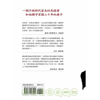 當年我被捕時,正當人生青壯黃金時期[3],那時費盡精力建立的創業途徑全部被毀,離妻離子被關進黑牢,身不由己,拘押期間更是生死未卜,嘗盡人生煎熬,悲憤而痛苦。尤其出獄後,還受情治監視人員的百般刁難,找事工作都處處受到干擾、限制,這中間所受委屈及艱辛的過程,在本書裡都敘列出來。這種折磨及困苦,幸虧獲得賢妻多方鼓勵及支援,才得以克服及度過。