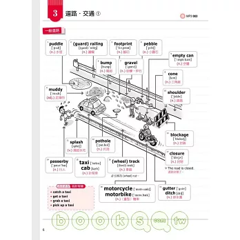 不同於傳統條列式排列,以插圖強化單字印象,搭配MP3朗讀,輕鬆記憶多益單字。