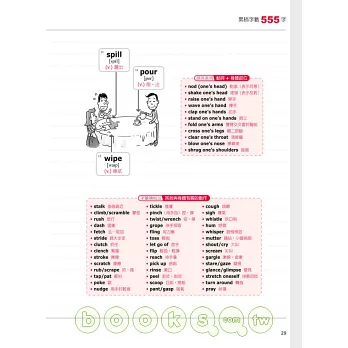 比起文字,圖像給人的印象更強烈。本書首創多益字彙圖像記憶法,捨去冗長的文字說明,直接以插圖提示字義,幫助讀者掌握字義,過目不忘。