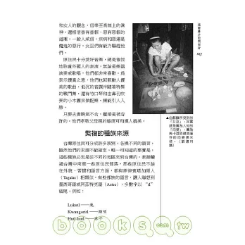 最後,感謝楊南郡先生,在本書邊譯邊發表期間,毫不吝惜地指出一些譯名的錯誤或不清楚之處,使得書中的地名、族名有了更清晰的面貌。另外也要特別謝謝旅法攻讀人類學的李國銘,巨細靡遺地指正許多誤植或漏譯的地方,使這本譯書的錯誤減低不少。還要謝謝劉還月先生的督促,以及精采的導讀,讓這本書更具可讀性。圖片方面,由於原版圖片甚為模糊,除了儘可能地予以使用外,更商請收藏文史資料甚豐的台灣常民文化田野工作室參考文章的內容,重新配圖,希望有助於朋友們更深入書中的世界,若有不妥之處,責任應當由譯者承擔,特此說明。最後,要謝謝父親陳玉榮老師為我謄稿和校訂。