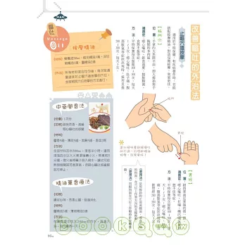 「Part2六大常見腸胃不適的調養篇」特別挑選出——「胃口差、腹脹、肚子痛、拉肚子、便祕、嘔吐」6大症狀,是每個小朋友成長期都會遇到的問題,告訴父母最想知道、最需注意的細節、最實用的改善方法;每個症狀除中醫觀點外,也含括西醫觀點,讓父母一次清楚瞭解中西醫看法,而且書中搭配的輔助療法無侵入性,都是小朋友最喜歡的按摩、泡澡,配合的藥膳特精心設計,無傳統藥膳濃厚的中藥味,都是小孩愛吃的食物,讓寶貝的所有不適一掃而空,爸比、媽咪不用再操煩!