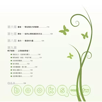 希望所有學練瑜珈的朋友都能有機會擁有這本《塑身經絡瑜珈》,藉由本書的引導,可以自行打通全身經絡,同時化解長期以來解不開的身結和心結,卸下放不下的過去。不論是為了「外在的塑身」或「內在的健康體質」的追求,這本書都將是讀者最好的選擇。
