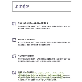 為了使考生有效復習及作答正確,試題本最後設計了「我的答錯題目筆記」頁面供考生複印使用。考生可以整理出答錯題目,發現自己答錯的真正原因,並記下疑問與提醒。此部分對於作答經常出錯的題型,或是較為艱深的題型,都非常有效。