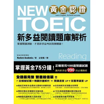 本書是由韓國最具權威的英檢考試訓練機構 Hackers Academia 所策劃。Hackers 以系統化與獨創性兼具的英文教學方法享譽國內,成功帶領韓國考生迎向多益高分,平均表現遠勝台灣及日本!透過本書,你可以找出韓國考生的致勝關鍵,更可為自己的多益表現大大加分!