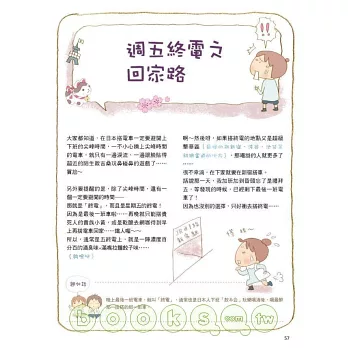 Ps.本書內容所收錄的精采篇章,除了重新編整之外,更特別新繪插畫及照片,讓您更貼近日本生活實況,不用住日本,也能實際感受台灣、日本生活大不同的精采與趣味!