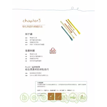 2.只要學會拓印、插畫、刺繡、拼貼基本四大技巧,即可體驗1+1>2的布作創意。