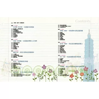 是呀!我的夢想一直是遙遠的、美麗的、要繞地球半圈才能抵達的城市,對近在咫尺的台北卻總是漫不經心。因為不花心思,還曾把它歸類為不美的、雜亂的、沒有特色的城市。觀念轉變之後,我決定放空一切,把熟悉的台北當成一個陌生城市來研究,也有了寫、繪台北的計畫--重新蒐集資料、規劃路線、實地走訪、攝影、寫文,然後把重要景物一筆一筆畫出來。終於完成了九條台北適合漫遊的路線,以及沿途景點介紹。
