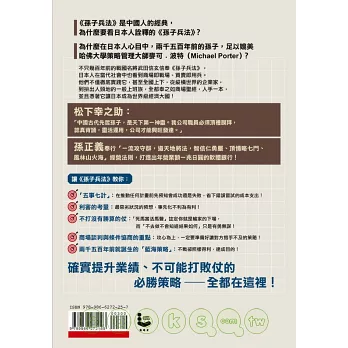 不只幾百年前的戰國名將武田信玄信奉《孫子兵法》,日本人在當代社會中也看到商場即戰場、買賣即用兵。他們不僅徹底實踐它,甚至全國上下,從縱橫世界的企業家,到拚出人頭地的一般上班族,全都奉之如商場聖經,人手一本,並且憑著它讓日本成為世界級經濟大國!