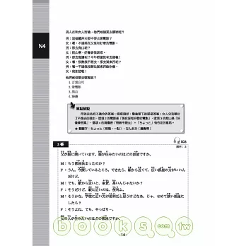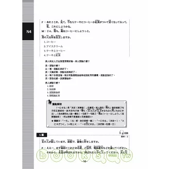 4.收錄完整兩回「聽解」模擬測驗,100%模擬日檢聽解35分鐘考試時間,包括唸題速度、題目長度、對話情境以及試題播放停頓時間長度等,讓你宛如置身考場。