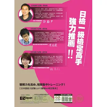2.專業日籍老師錄音:收錄超過2小時聽解MP3試題音檔,由EZ Japan專業日籍老師錄製,徹底掌握聽力答題訣竅。