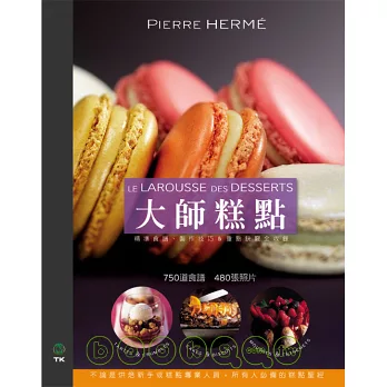 雙面跨頁的20張照片代表Pierre Herme大師的「最愛」,在這些獨創作品中,Herme大師巧妙地運用著口感與味道之間的搭配:柔軟和酥脆、熱和冷、酸與苦…等,包括:散發醉人玫瑰花香的冰杯玫瑰馬卡龍Coupe glacee Ispahan、有著絲滑白巧克力慕斯的激情Emotion Exalte、由百香果甜凍構成的絲滑感受sensation satine…讓饕客們垂涎三尺。《大師糕點DESSERTS》Pierre Herme 大師2009年最新版著作,法國與美國亞馬遜網路書店5顆星推薦,受到無數饕客讀者的歡迎。