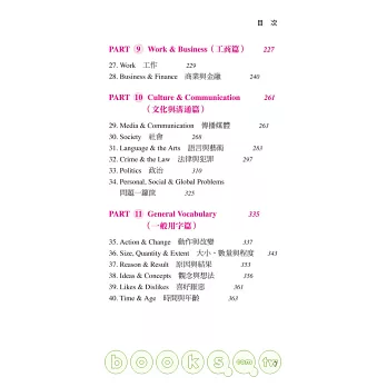 3.每一主題所涵蓋的詞彙分成「基礎核心」及「進階」兩級,讀者可藉此循序漸進提升詞彙能力。